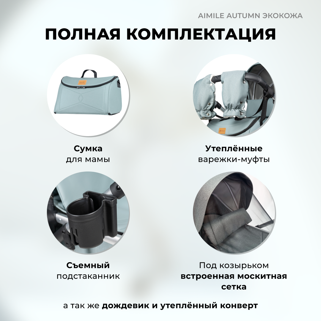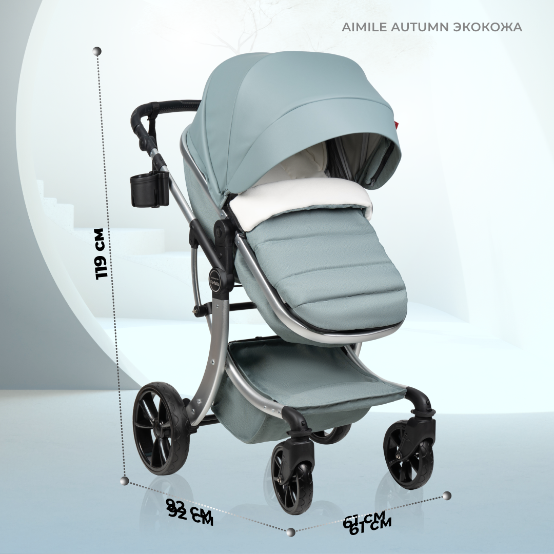 Коляска-трансформер для новорожденных Aimile Original Autumn, экокожа, Атлантида