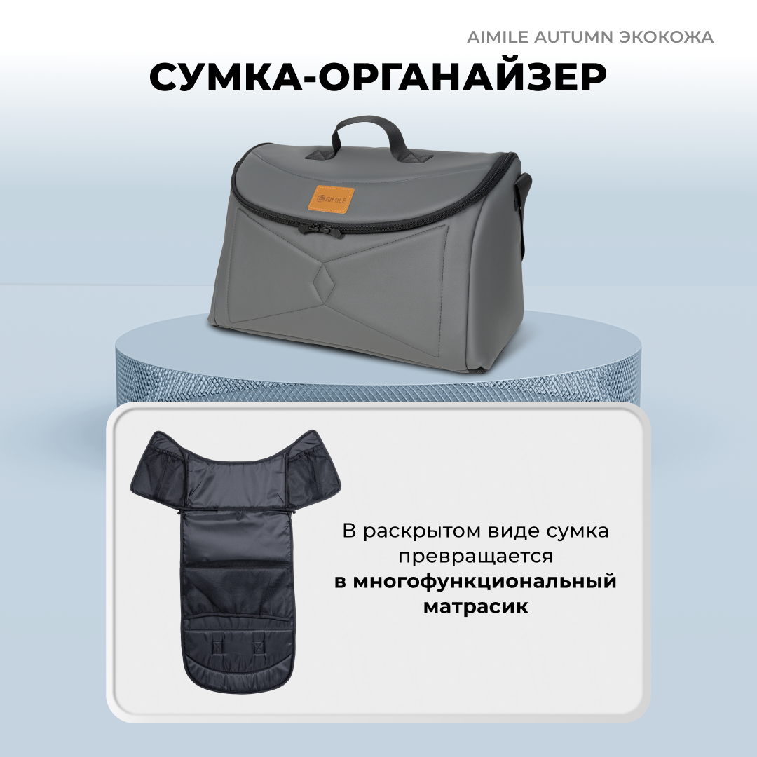 Коляска-трансформер для новорожденных Aimile Original Autumn, экокожа, темно-серый