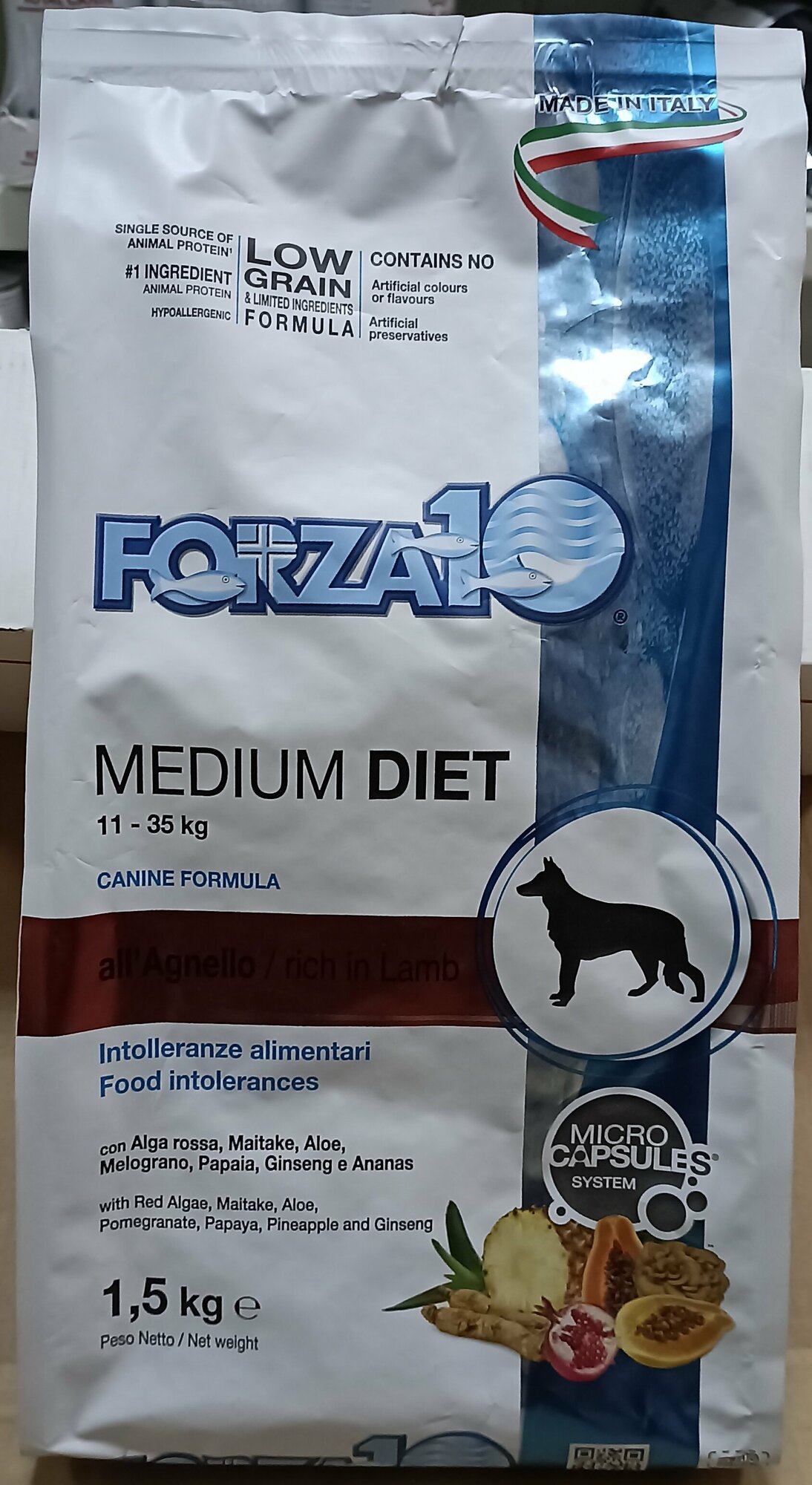 Forza10 Medium Diet сухой корм для взрослых собак средних пород из ягненка с микрокапсулами - 1,5 кг