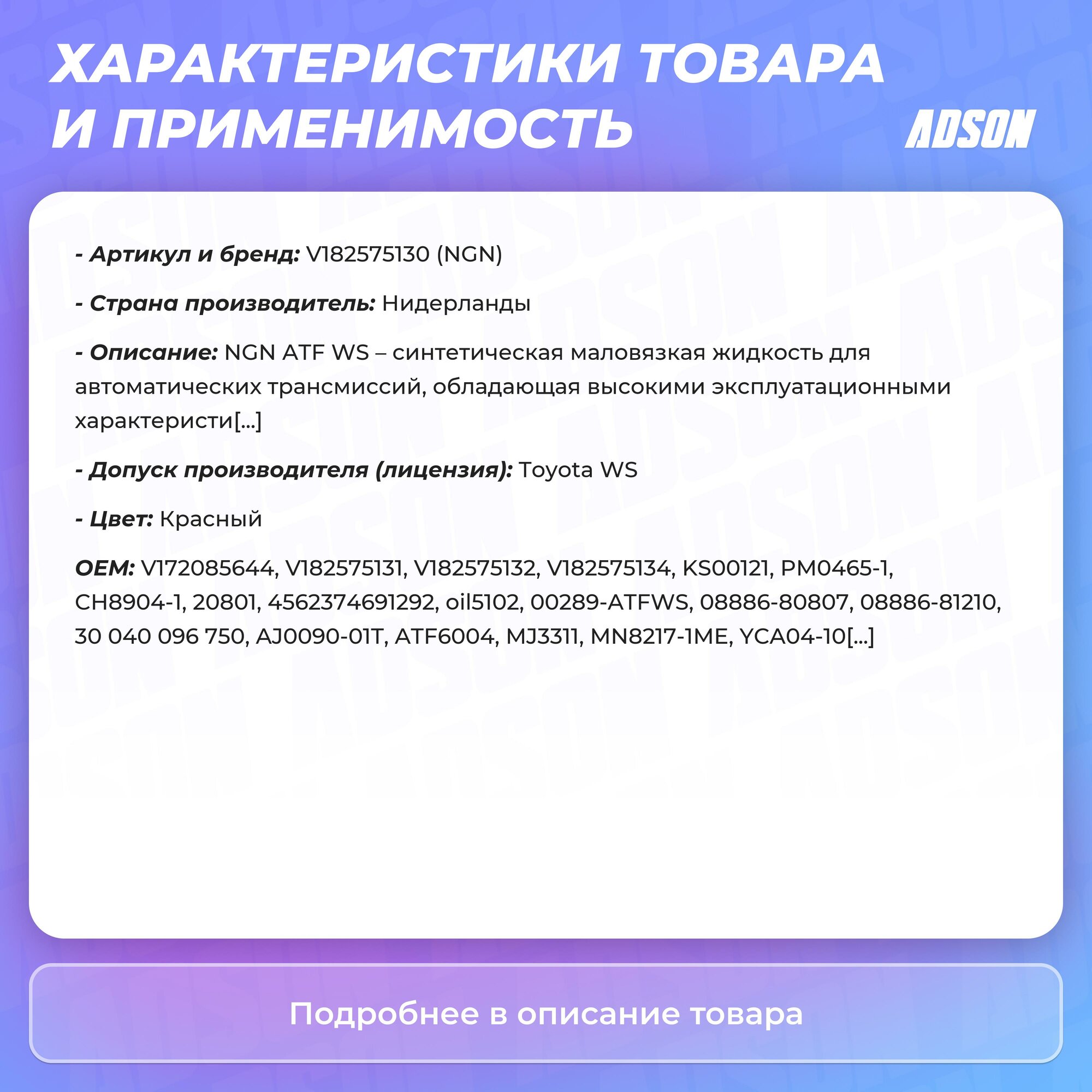 СохранитьAtf ws a-line 1л (авт. транс. синт. масло) Ngn V182575130 интересное:
