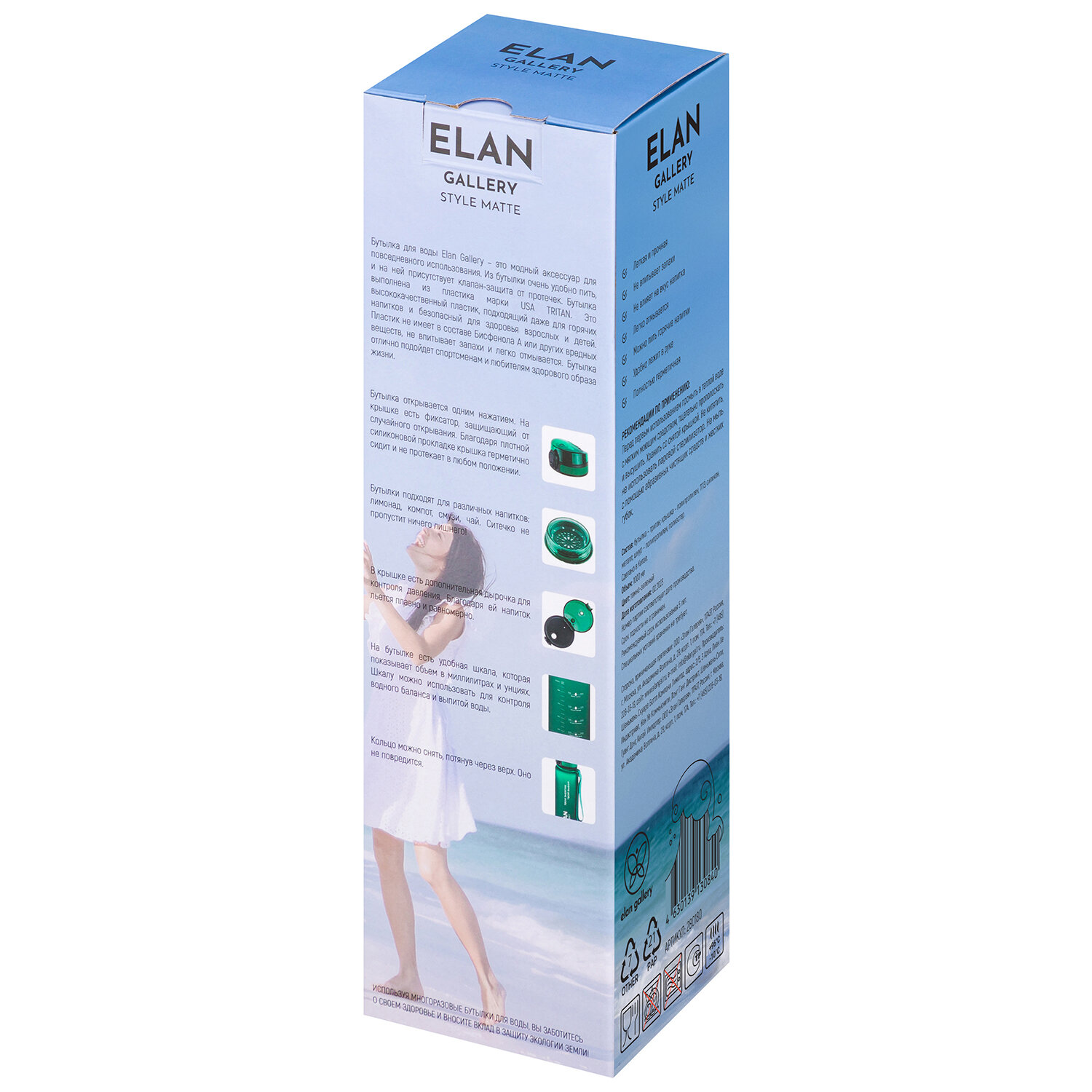 Бутылка для воды Elan Gallery "Style Matte" аквамарин-морская волна с мерной шкалой (280177)
