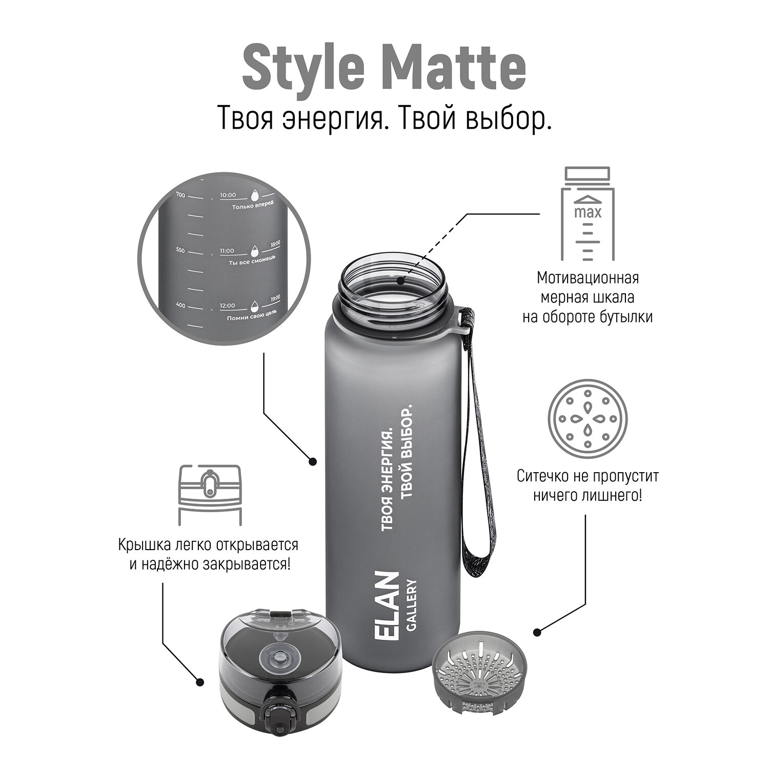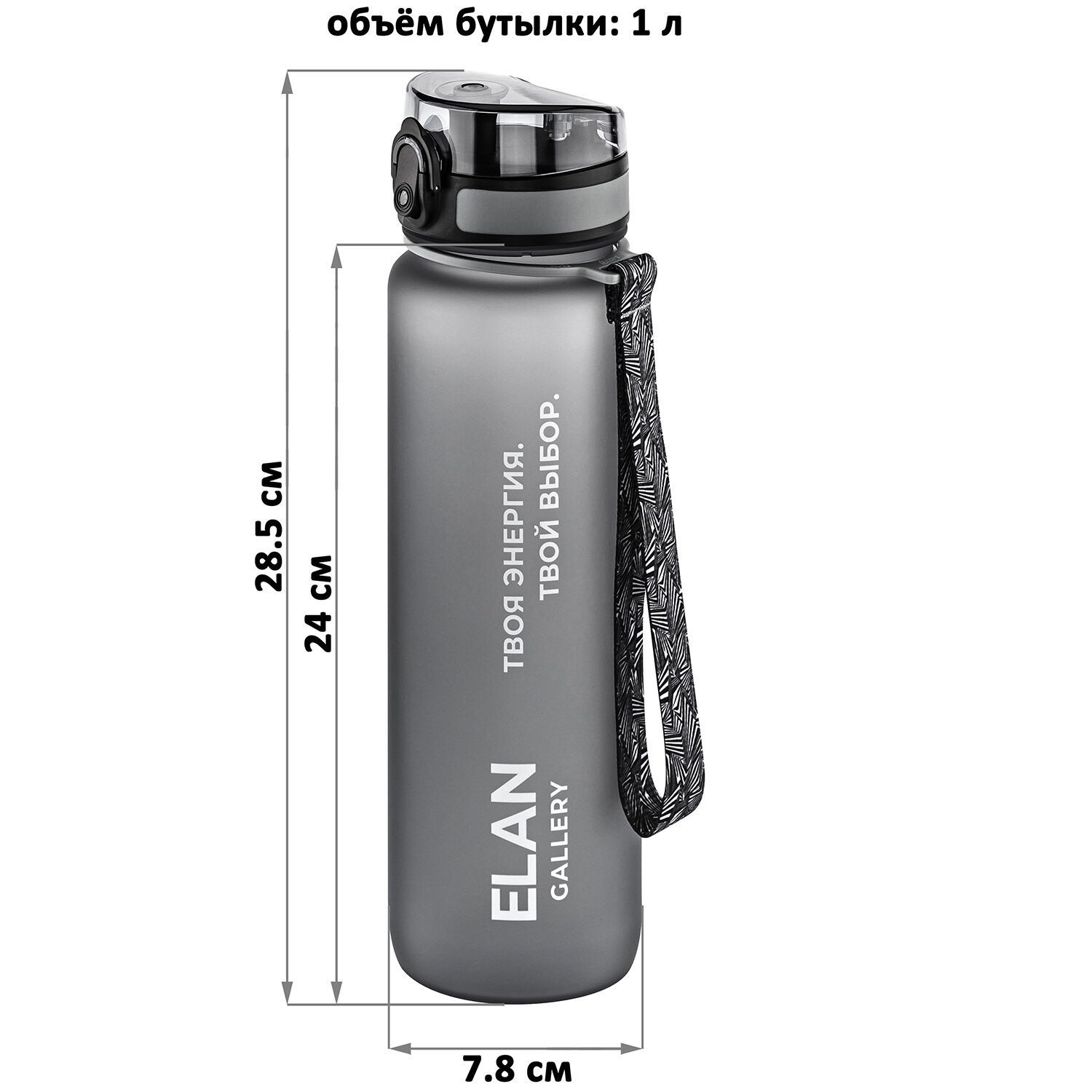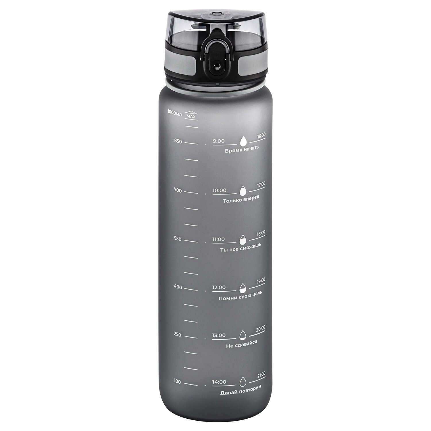 СохранитьБутылка для воды 1000 мл 7,8*7,8*28,5 см "Style Matte" мотивационная серая интересное: