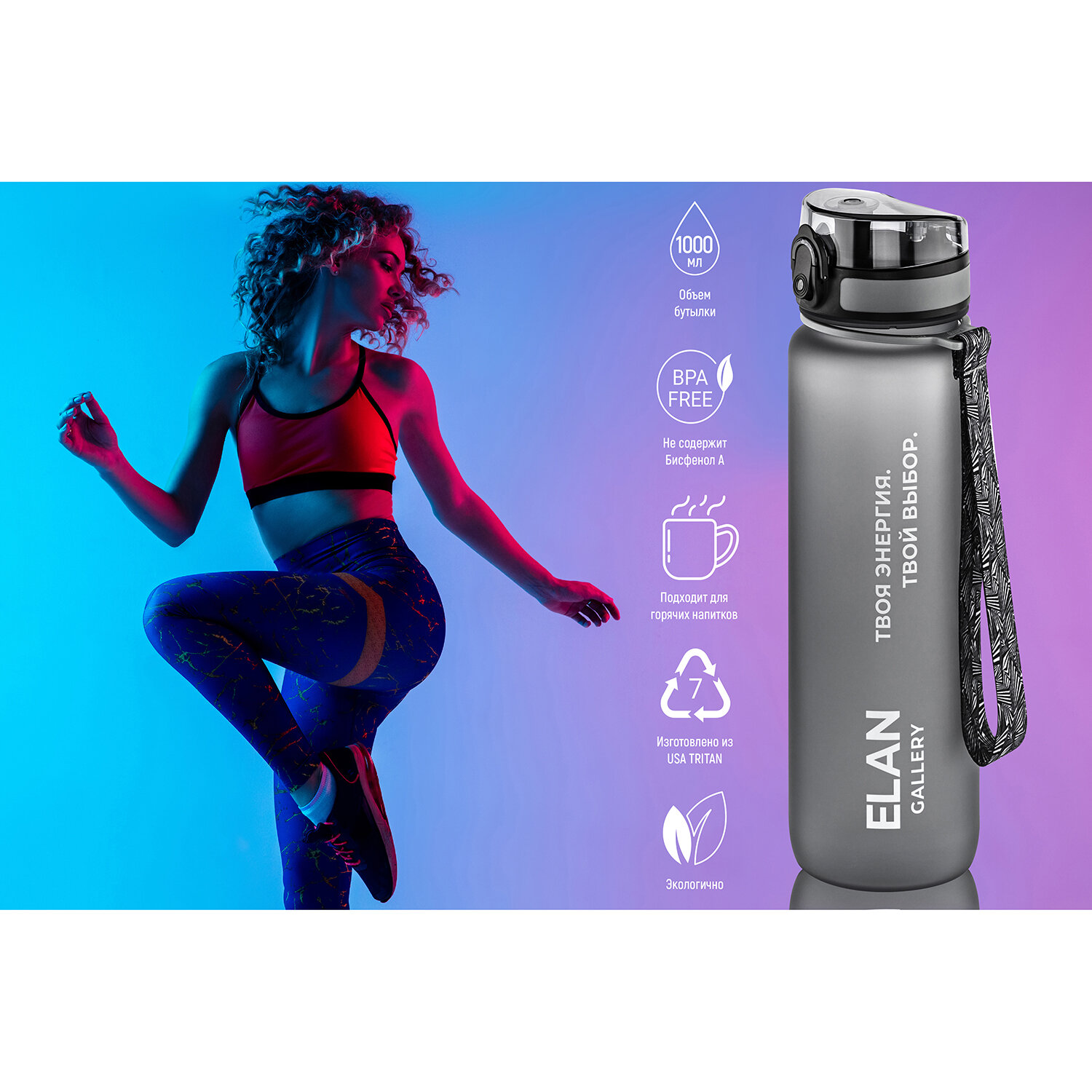 | Отзыв: | Бутылка понравилась, матовое покрытие с эффектом софт тач дает прекрасные тактильные ощущения?