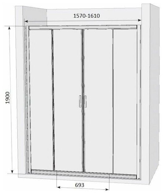 Душевая дверь Ravak Blix BLDP4 1900x1600 полированный алюминий