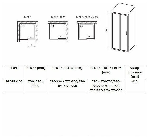 Душевая дверь RAVAK BLIX BLDP4-190 (1870-1890x1900) раздвижная, стекло, блестящий+Transparent