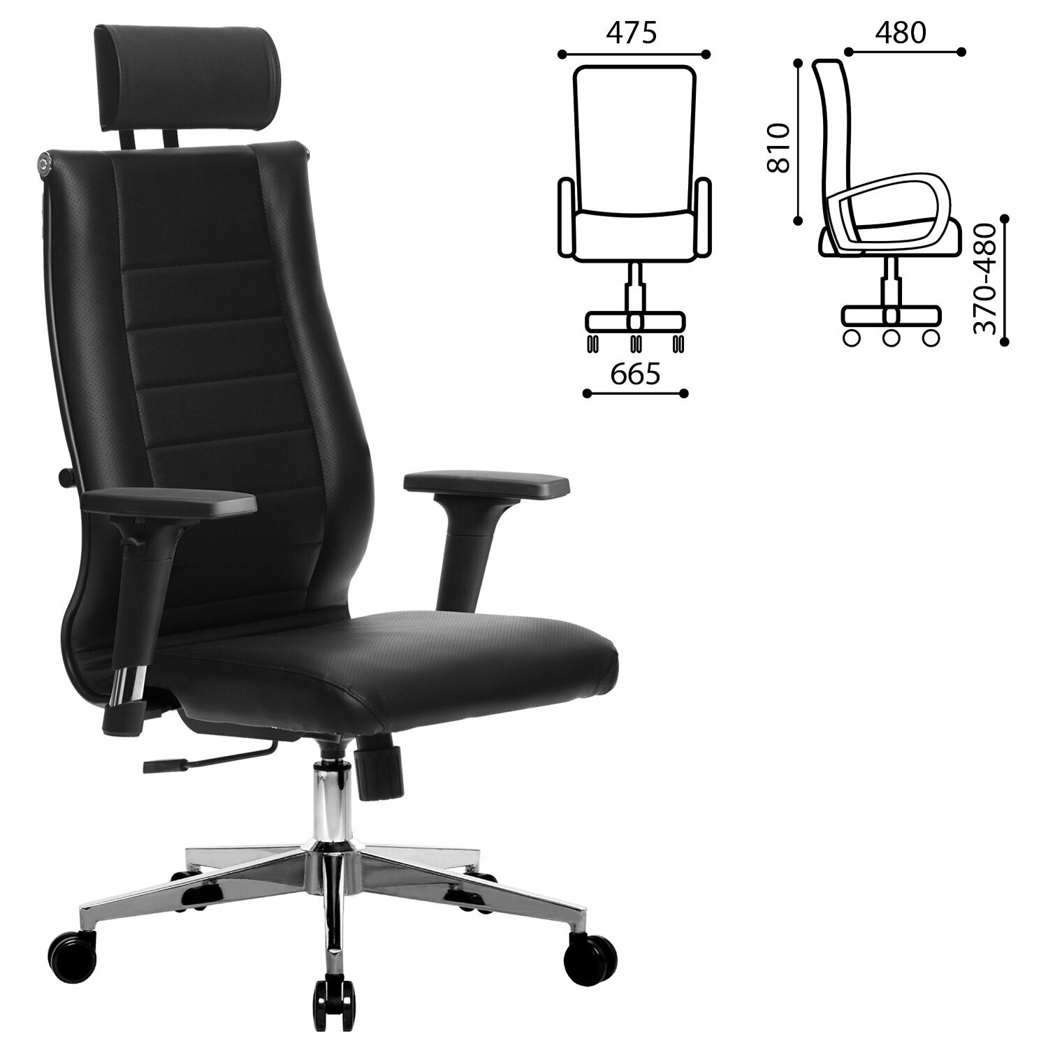 Кресло офисное метта К-32-2D хром, экокожа, подголовник, сиденье и спинка мягкие, черное