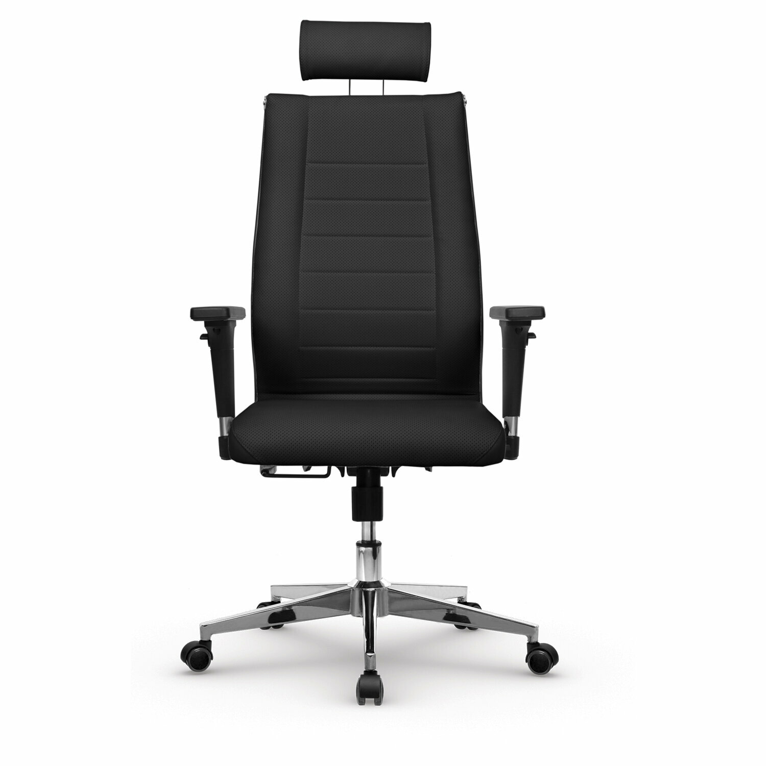 Кресло офисное метта "К-33-2D" хром, рецик. кожа, подголовник, сиденье и спинка мягкие, черное