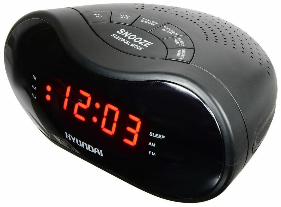 Радиобудильник Hyundai H-RCL160 черный LED подсв:красная часы:цифровые AM/FM