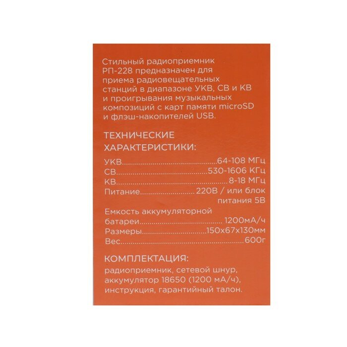 Ниже Вы можете прочитать отзывы на Сигнал Радиоприёмник "Сигнал РП-228", 220В, аккумулятор 1200 мАч, USB, SD, чёрный, ознакомится с подробными характеристиками, посмотреть интересные обзоры и фотографии на Сигнал Радиоприёмник "Сигнал РП-228", 220В, аккумулятор 1200 мАч, USB, SD, чёрный.