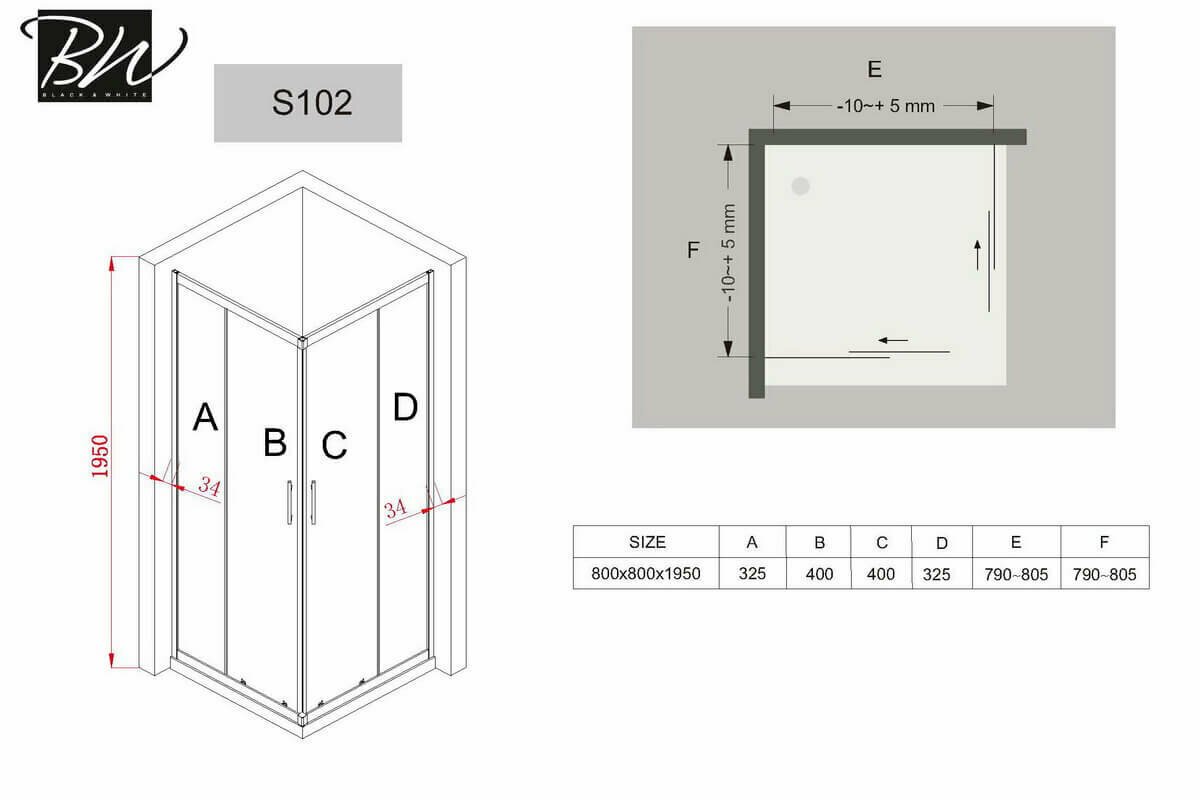 Душевое ограждение Black & White S102 80х80
