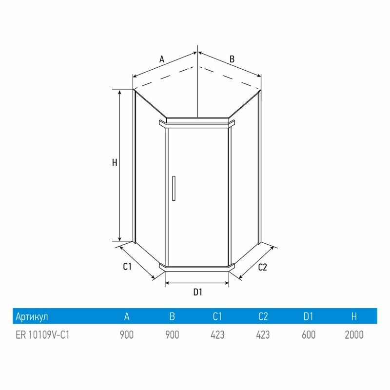Душевое ограждение Erlit ER10109V-C1 (900*900*2000) ER10109V-C1 , шт Erlit .