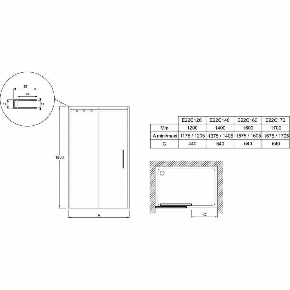 Купить Душевая дверь в нишу Jacob Delafon Contra E22C140-BL раздвижная 195x140 черный