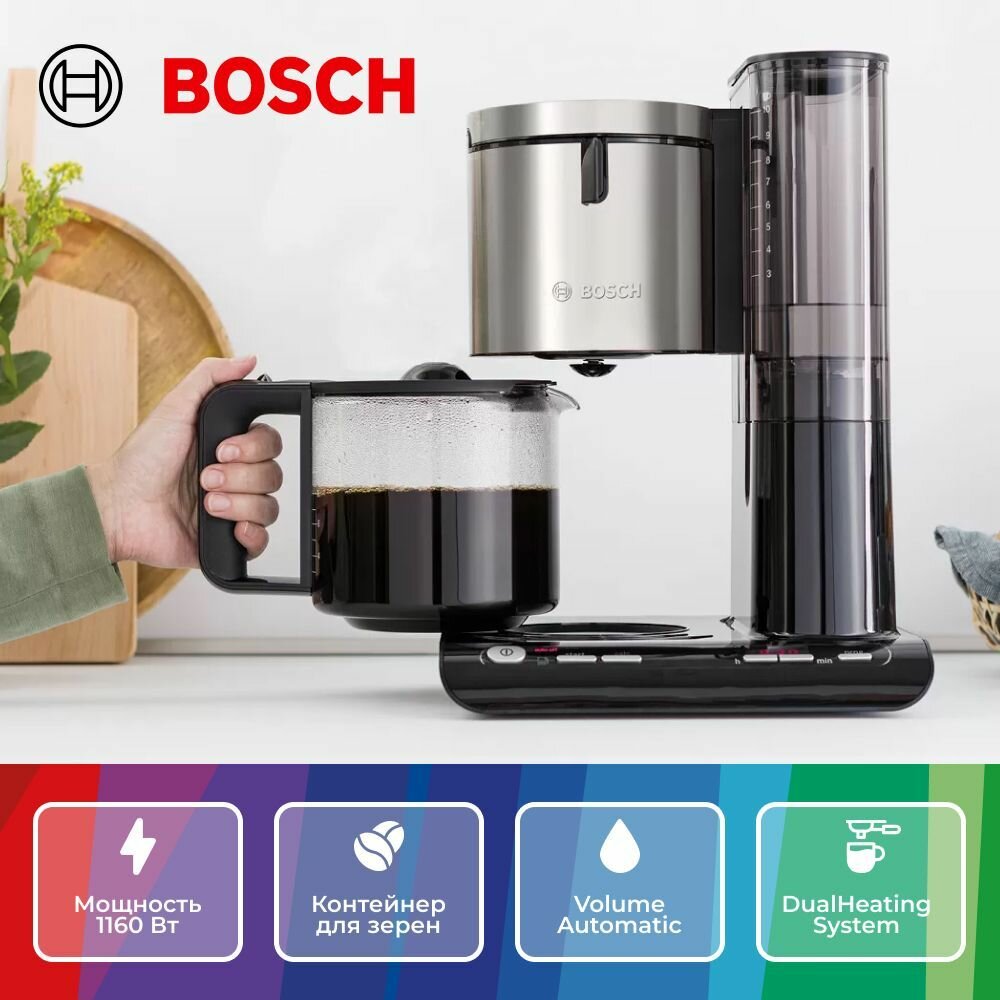 Кофеварка Bosch Styline TKA8633, капельная, черный, 15 чашек кофе, 1100 Вт