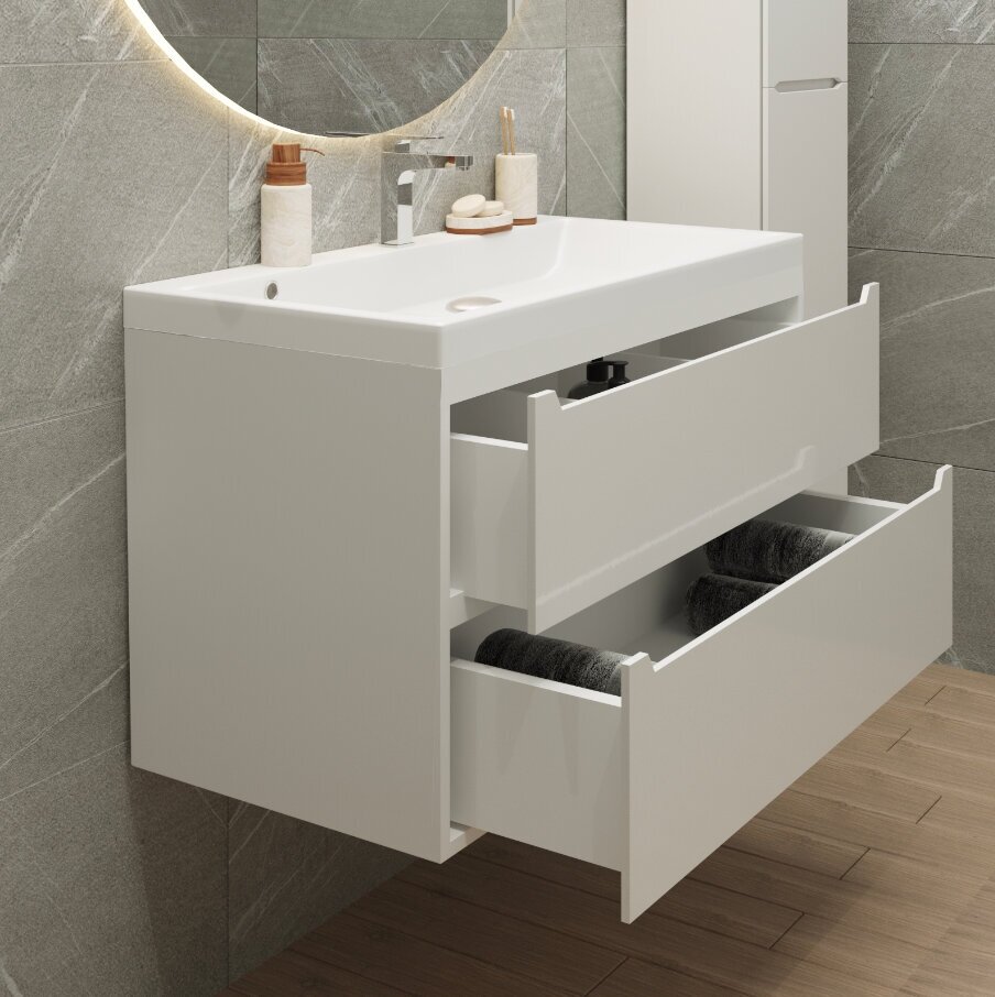 Тумба с раковиной Uperwood Tanos 100 см, подвесная, белая