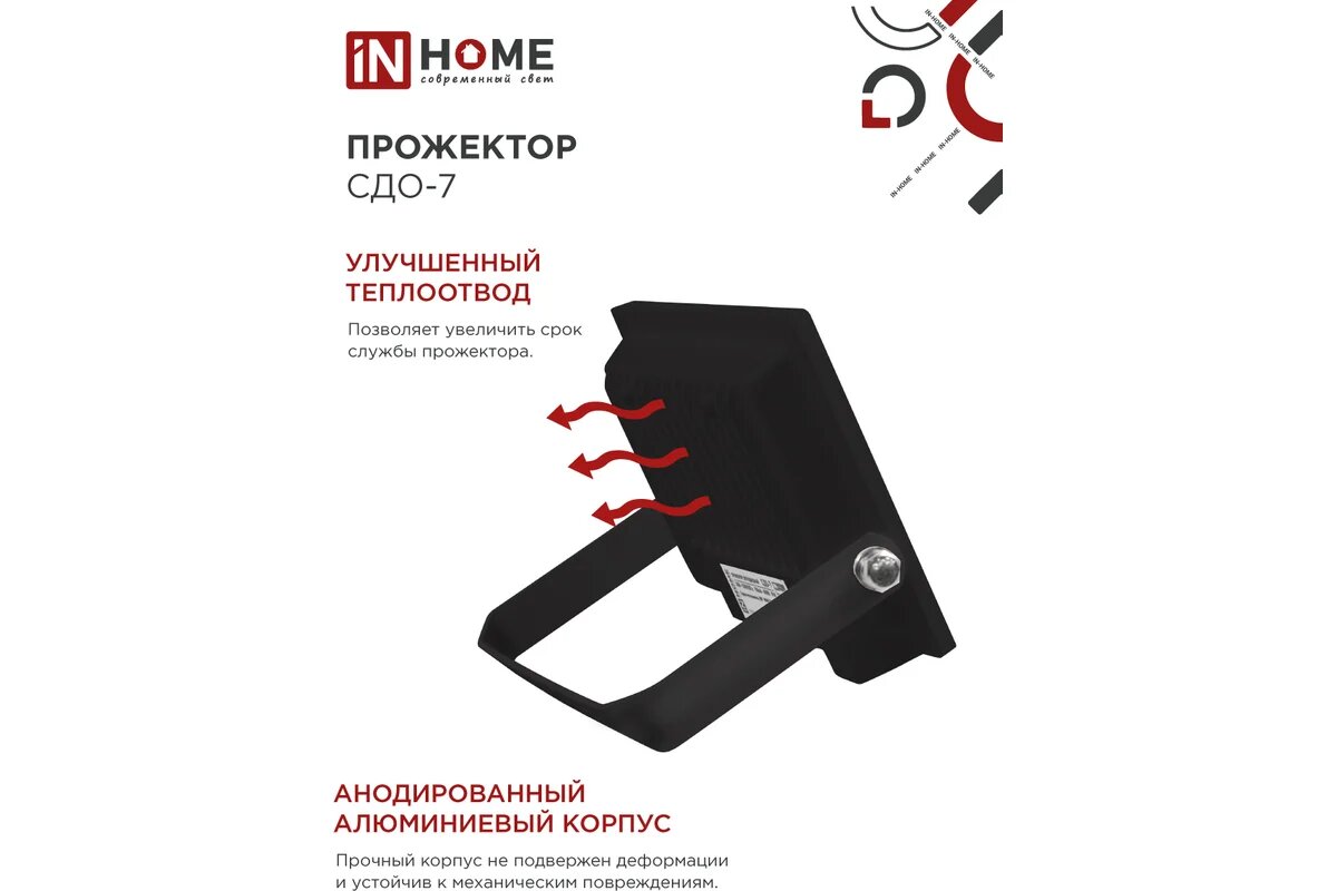 Прожектор светодиод СДО-7 20Вт 6500К 1600Лм IP65 черный IN HOME интересное: