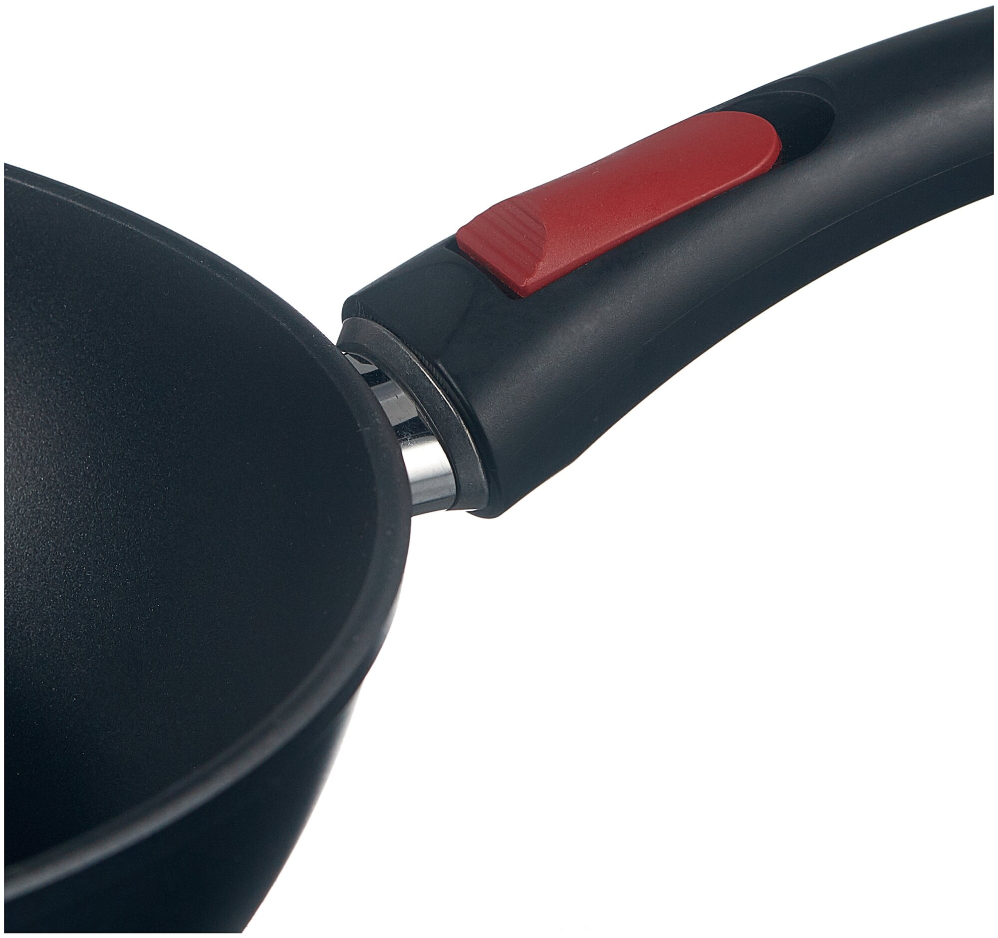 | Плюсы: | Семная ручка, удобно при хранении и мойки в посудомоечной машине. Хорошее антипригарное покрытие. |