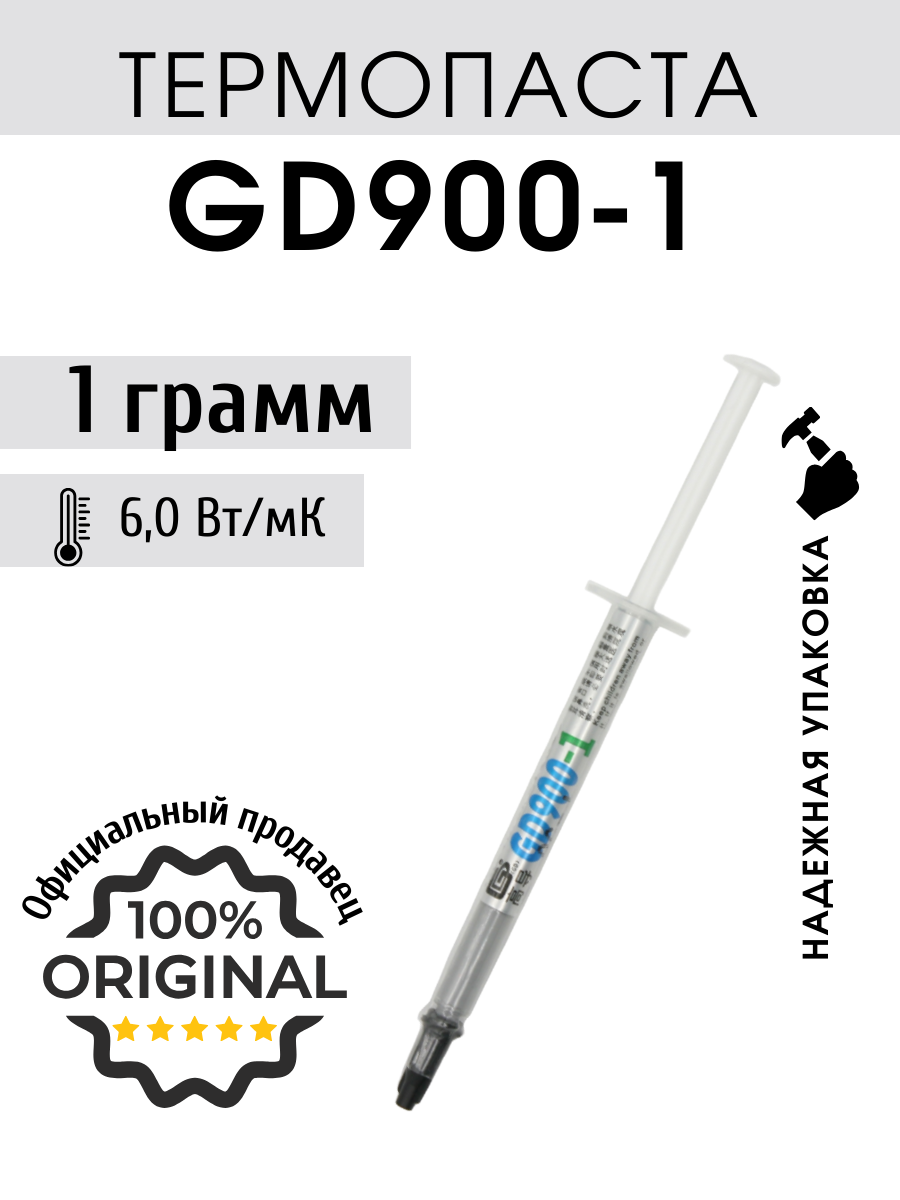 Купить Термопаста GD900-1 в шприце 1 грамм для процессора ноутбука компьютера, теплопроводность 6,0 Вт/мК