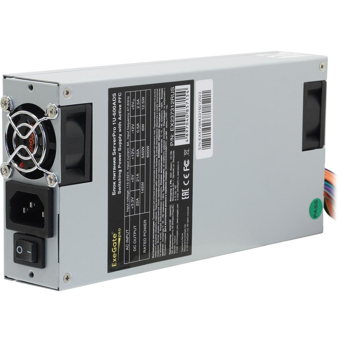 Серверный БП 600W ExeGate ServerPRO-1U-600ADS (1U, APFC, КПД 80% (80 PLUS), 2x4cm fans, 24pin, 2x(4+4)pin, 2xPCI-E, 4xSATA, 3xIDE) EX237312RUS
