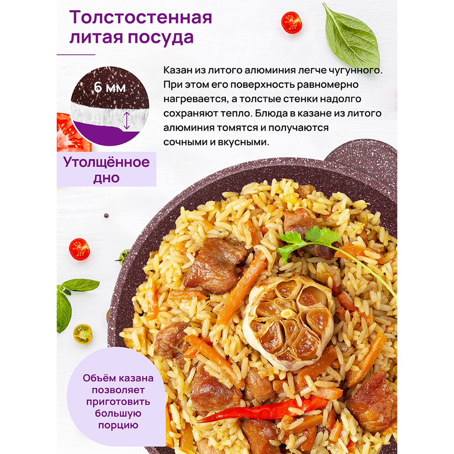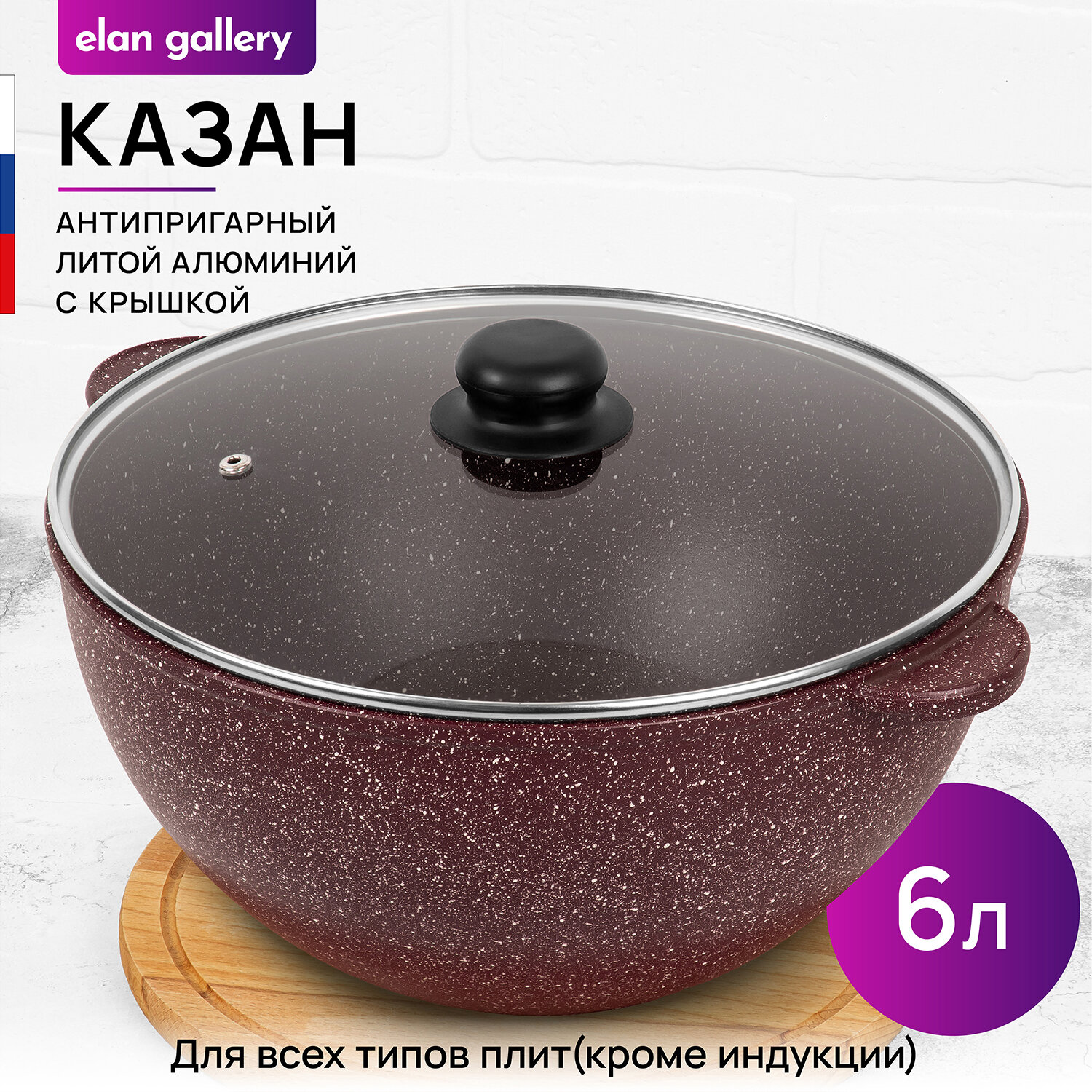 Казан 6 л Elan Gallery гармония вкуса "Рубин" с крышкой ф28, 34,5*29,5*19,5 см интересное: