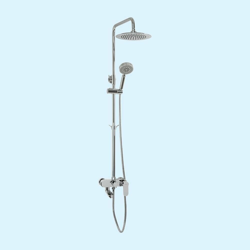 Смеситель и душевая телескопическая стойка с двумя лейками и мыльницей BRIMIX 3095