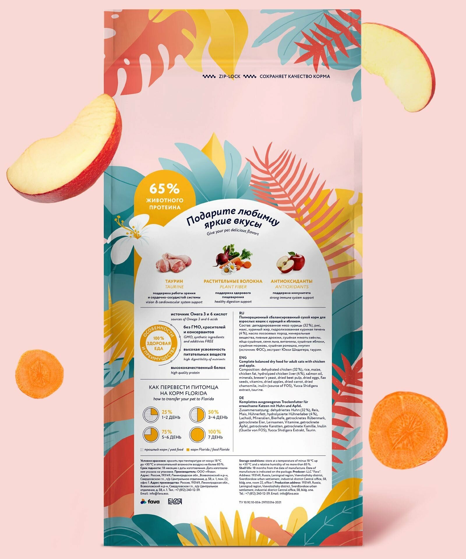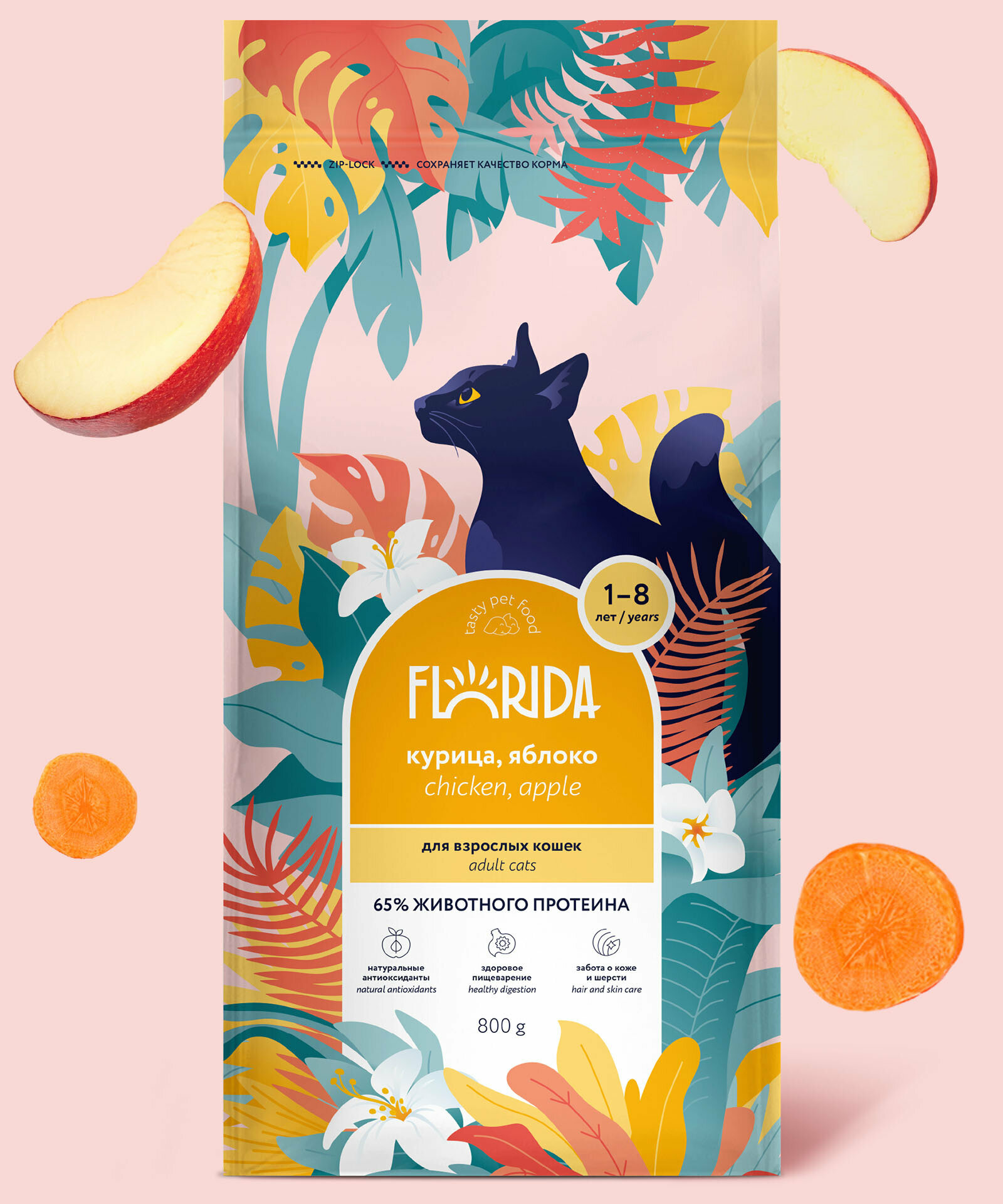 FLORIDA Сухой корм для взрослых кошек с Курицей и Яблоком