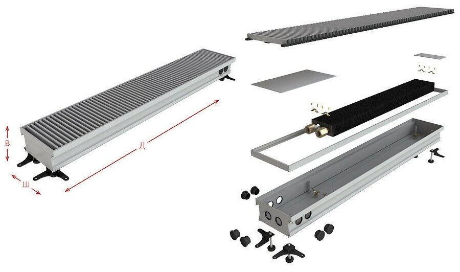 Встраиваемый внутрипольный конвектор TECHNO Usual KVZ 250-85-2600 RH04001315