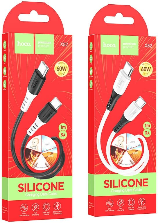 Кабель Type-C на Type-C, HOCO, X82, силиконовый, 1м, 60W, черный