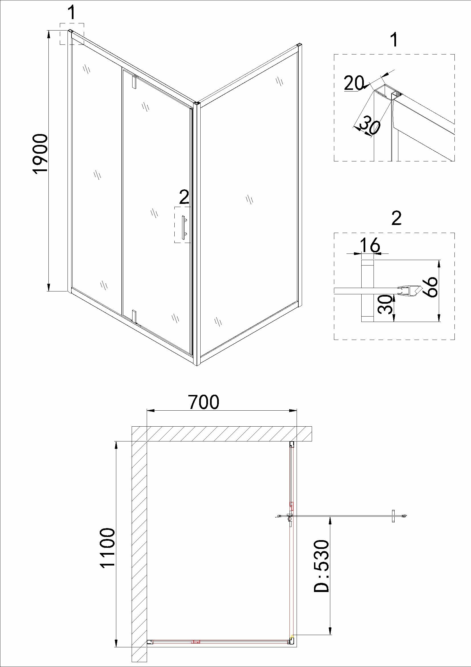 Душевое ограждение Niagara NG-83-11AB-A70B (110*70*190) прямоугольник, дверь распашная, 2 места
