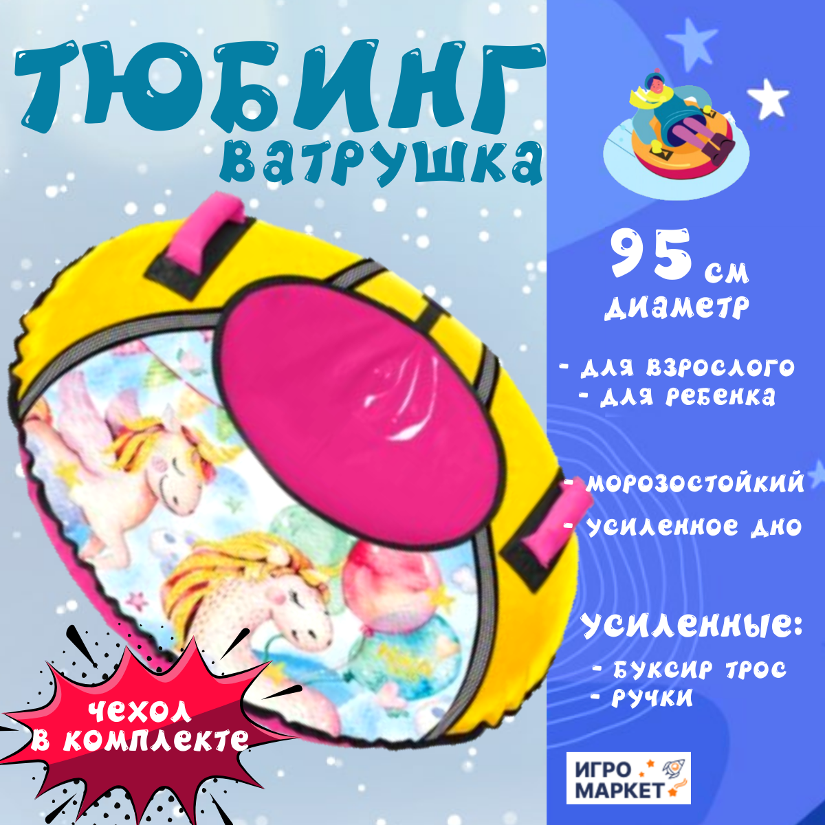 Тюбинг-ватрушка "Единорог", ТБ1КР-95/ЕР, d=95 см, тент/оксфорд