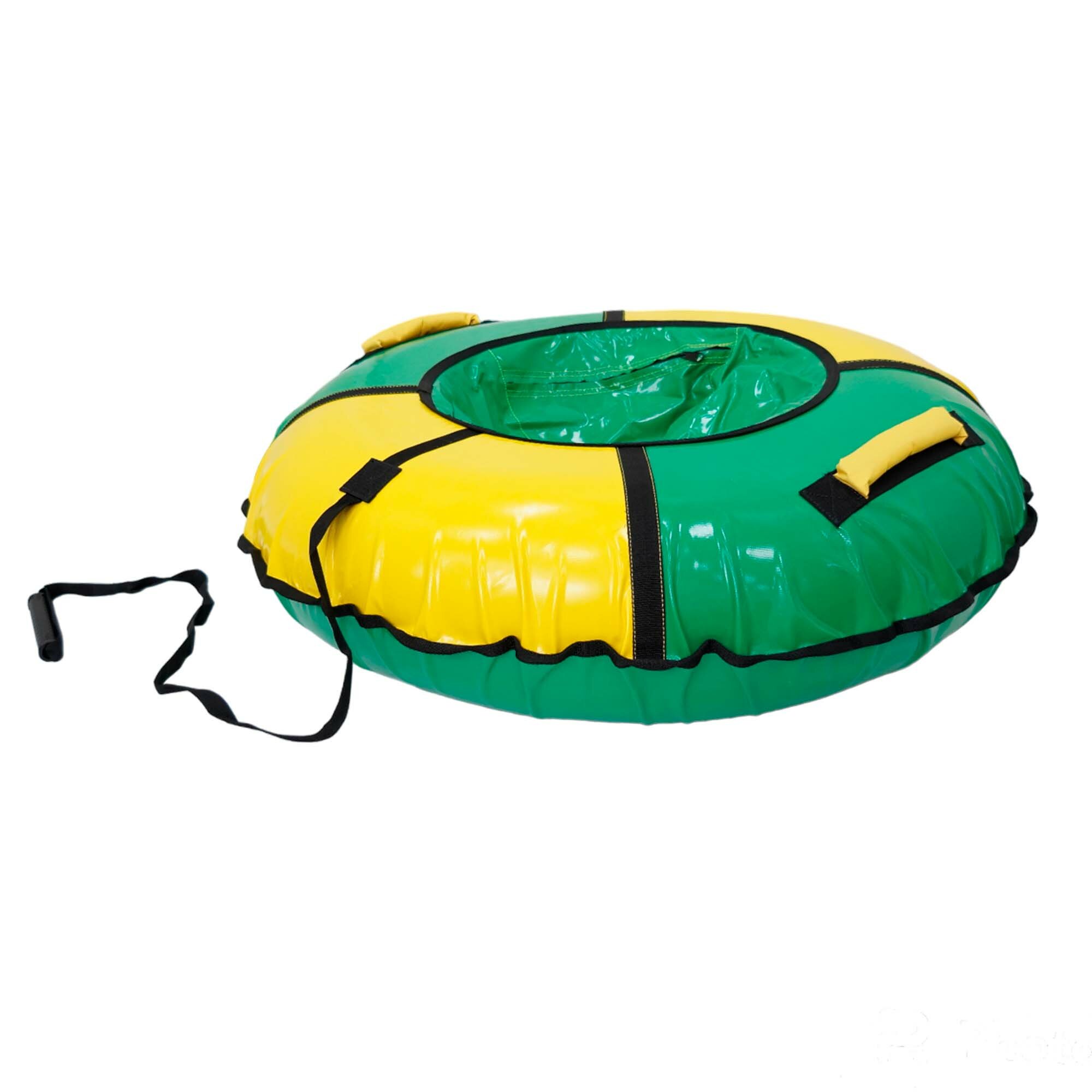 Ватрушка тюбинг диаметр 95 см, ПВХ, мягкие ручки, буксировочный трос, зеленый-желтый Классик Nika