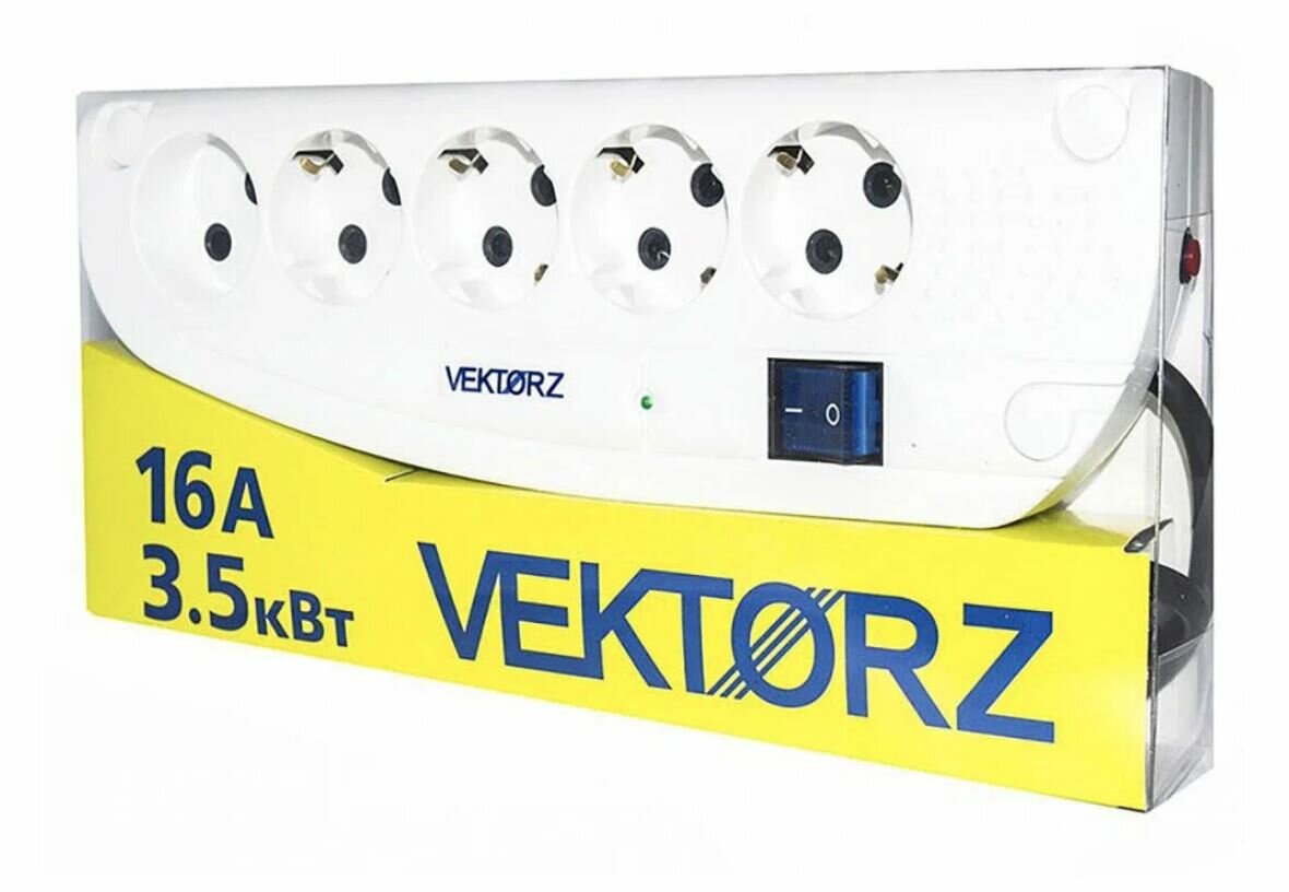 Сетевой фильтр Vektor Z, 3,5 кВт, 16А, с заземлением, 5 розеток, 1,8 м, белый