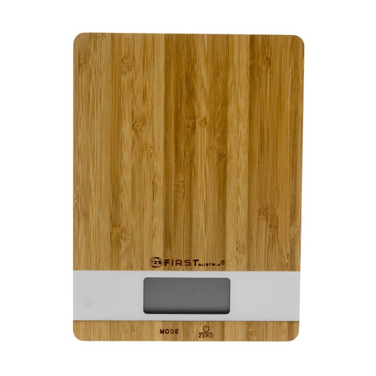 Весы кухонные FIRST FA-6410 Special Edition, бамбуковая платформа, электронные, 5 кг, 1 гр, тарокомпенсация, белый