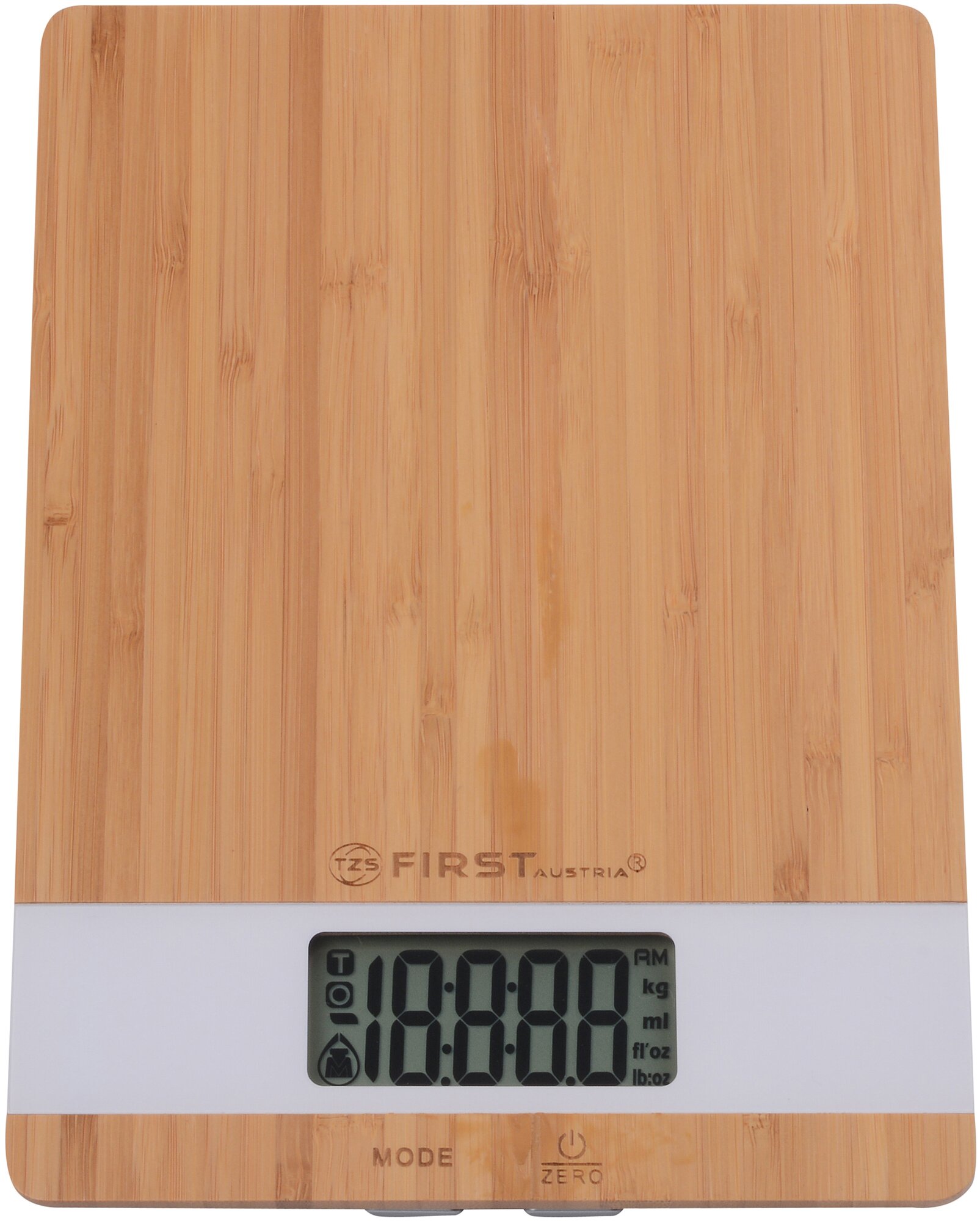Весы кухонные FIRST FA-6410 Special Edition, бамбуковая платформа, электронные, 5 кг, 1 гр, тарокомпенсация, белый