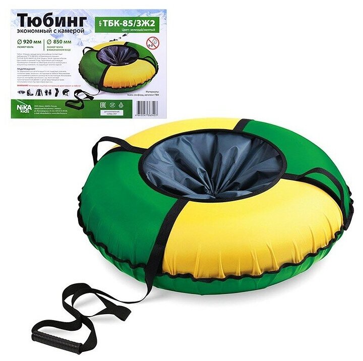 Nika Надувная ватрушка (тюбинг) 85см "Экономный" зеленый/желтый с автокамерой ТБК-85/ЗЖ2