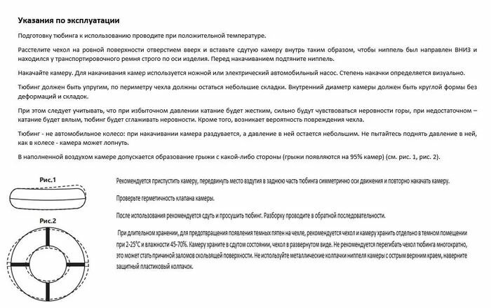 | Минусы: | Резиновая камера меньше самого тюбинга на 10-15 см. Также когда ребёнок сидит на тюбинге, то его попа едет по земле. Возможно если поставить камеру большего размере, то будет все хорошо. |