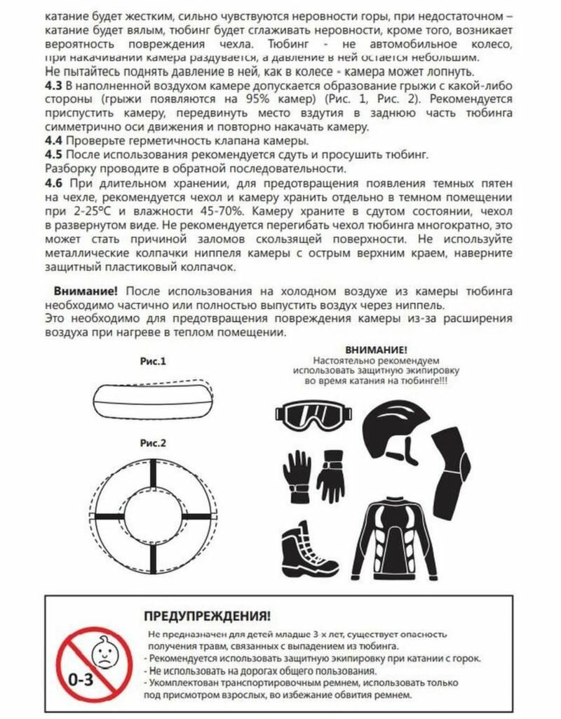 | Минусы: | Резиновая камера меньше самого тюбинга на 10-15 см. Также когда ребёнок сидит на тюбинге, то его попа едет по земле. Возможно если поставить камеру большего размере, то будет все хорошо. |