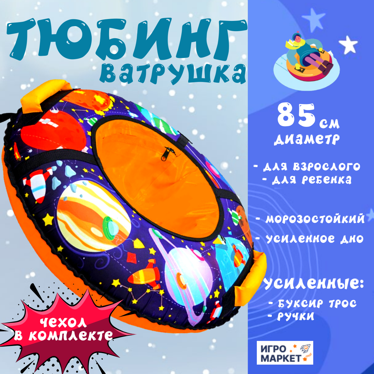 Тюбинг детский ватрушка зимняя 85 см