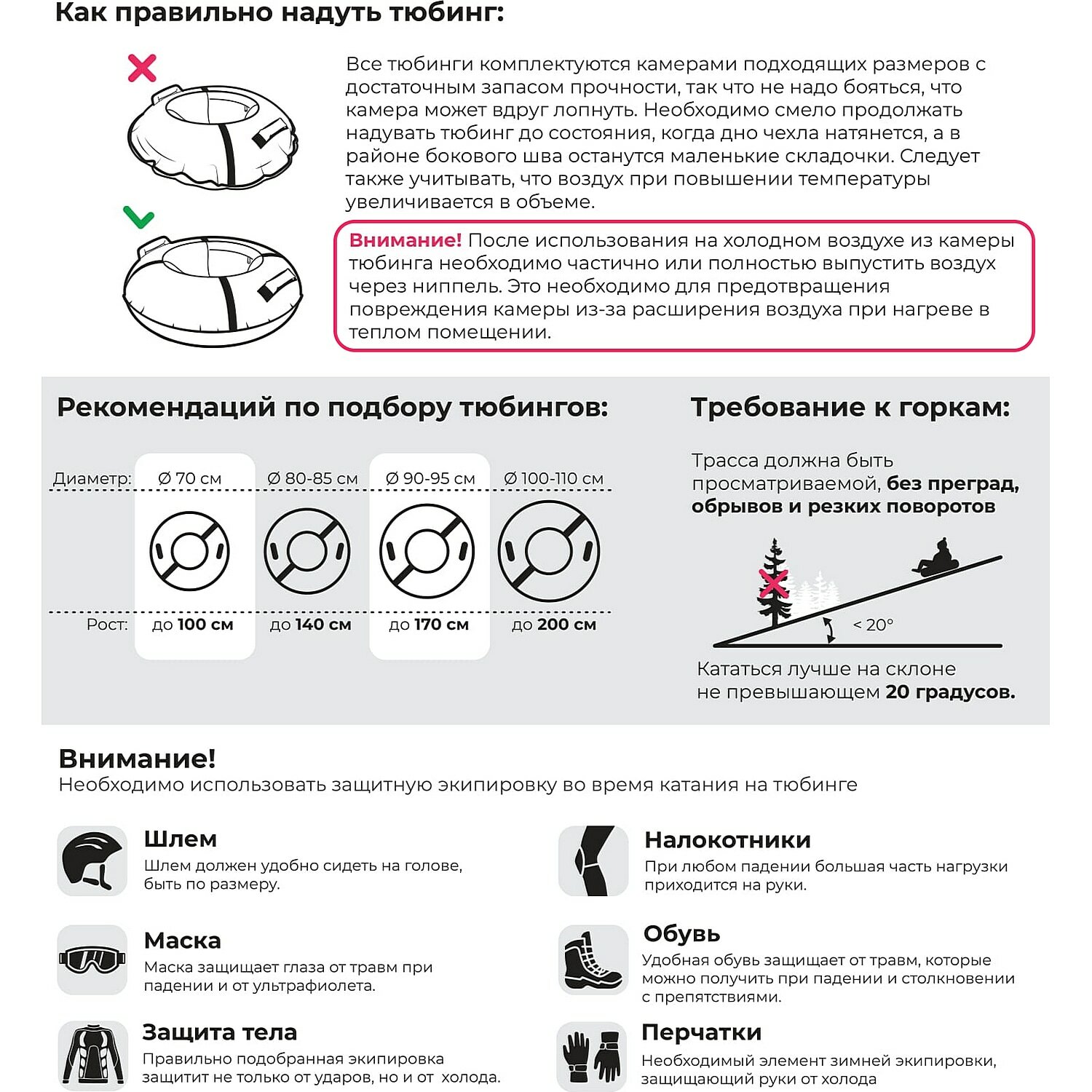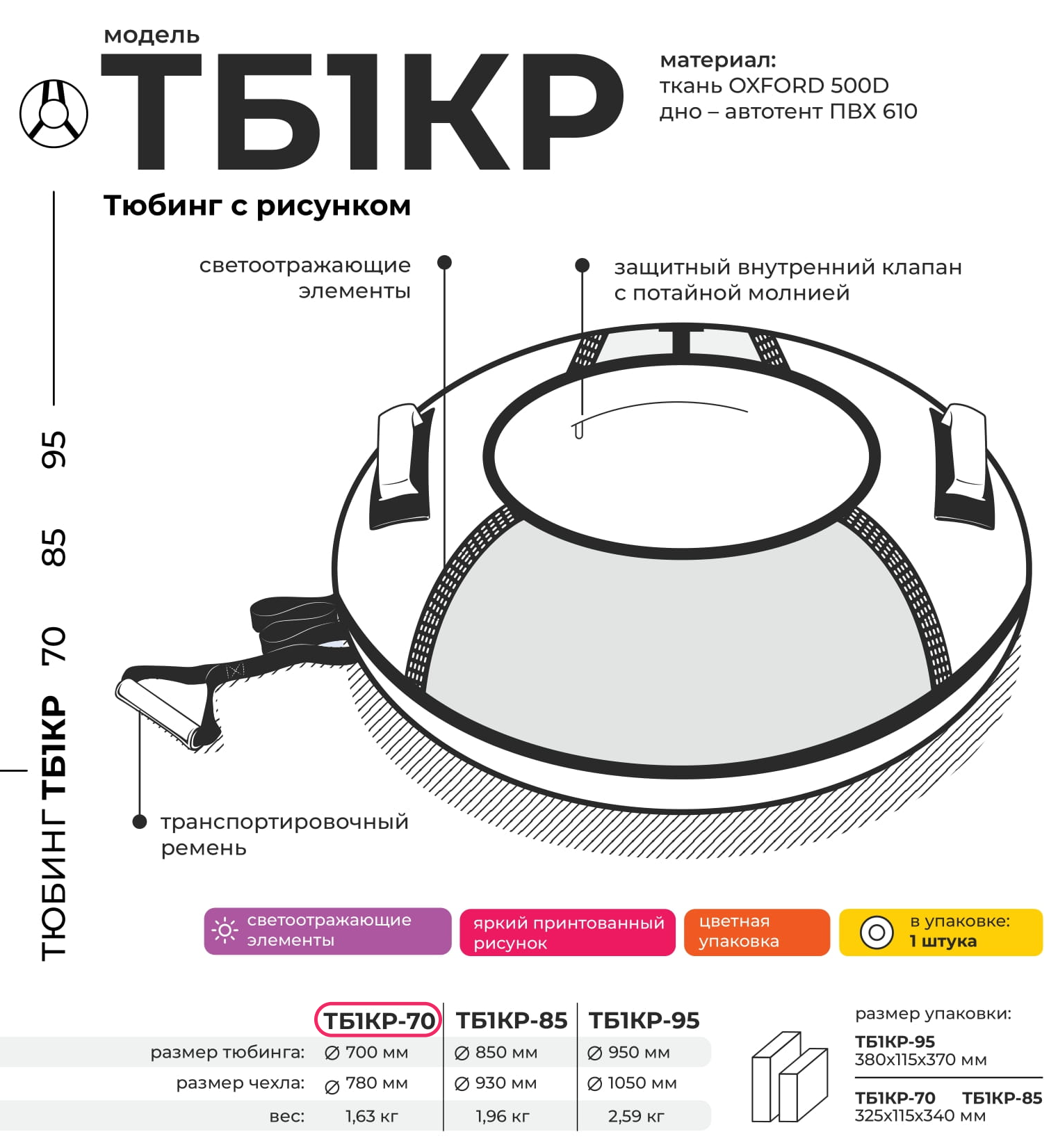 | Диаметр тюбинга | 70 см |