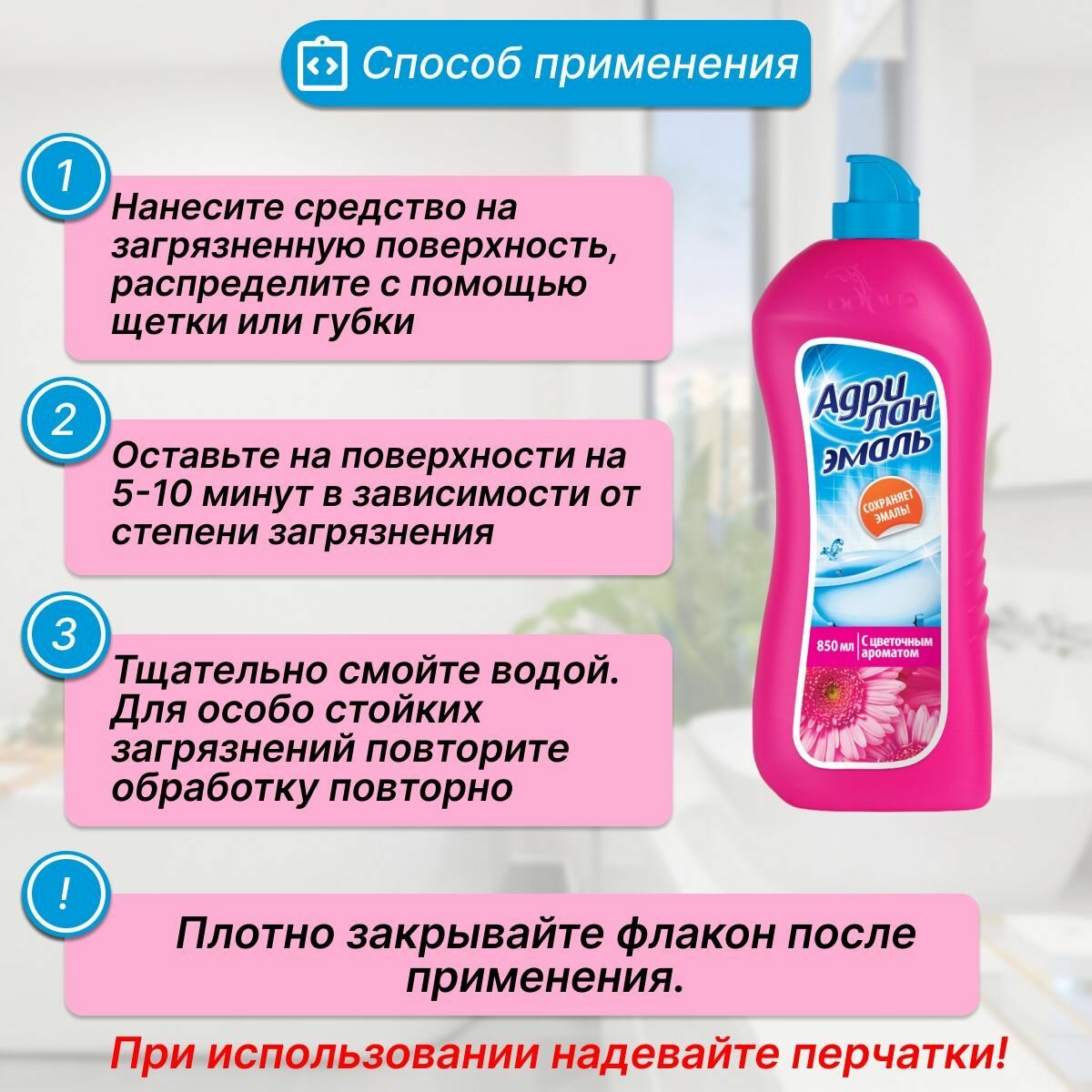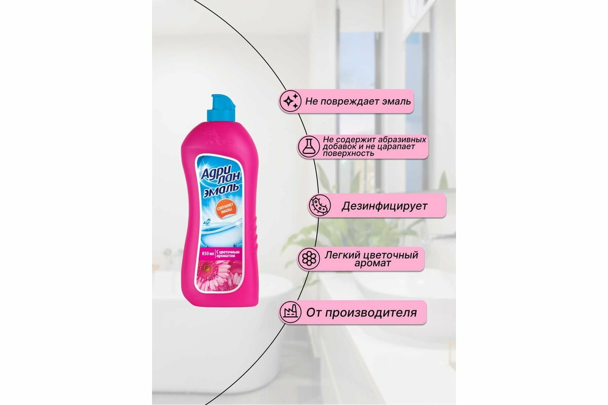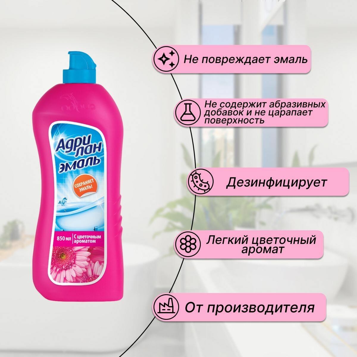 Средство для сантехники адрилан гель с цветочным ароматом эмалир ванн 850мл