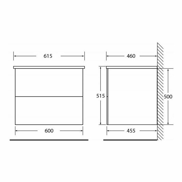 ETNA База под раковину подвесная с двумя выкатными ящиками, с доводчиками, Rovere Nature, 600x455x500, ETNA-600-2C-SO-RN-P