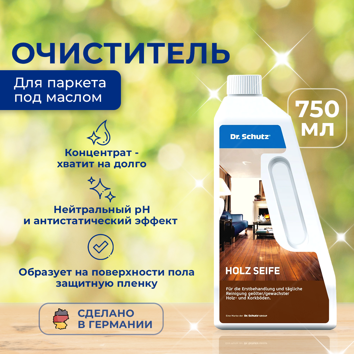 Очиститель "Dr.Schutz" для регулярного ухода за паркетом под маслом .Концентрат 750 мл интересное: