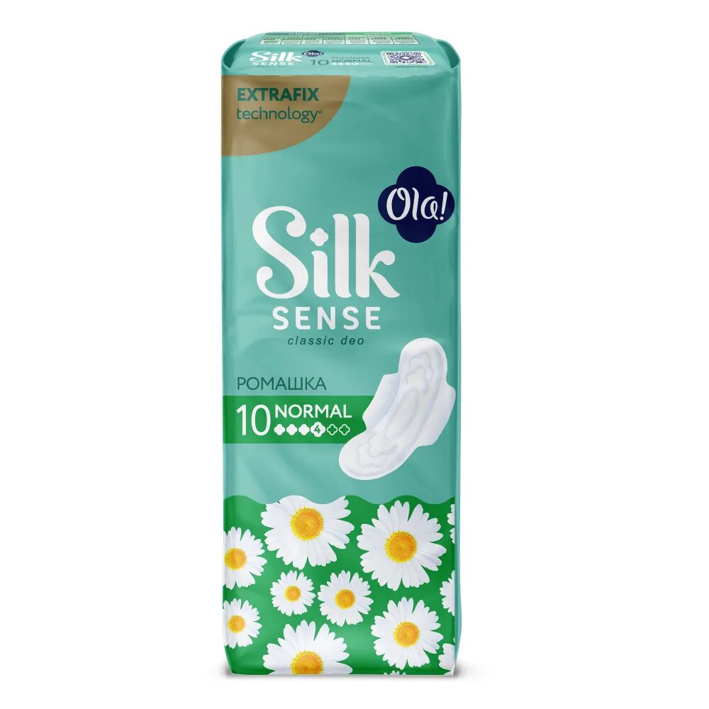 OLA! SILK SENSE CLASSIC WINGS NORMAL Прокладки женские гигиенические толстые Ромашка 10 шт/упак.