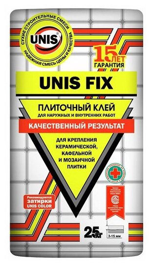 Клей для укладки керамической плитки Юнис Fix, 25кг интересное: