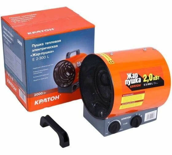 Пушка тепловая электрическая Кратон Жар-пушка Е 2-300 L (2 кВт, площадь обогрева 40 м3, термостат, нагревательный элемент - ТЭН, регулировка мощности) / тепловентилятор / для обогрева помещений