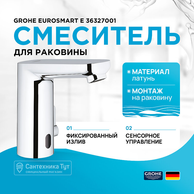 Смеситель инфракрасный для раковины GROHE Eurosmart Cosmopolitan E с регулируемым ограничителем температуры, хром, (36327001)