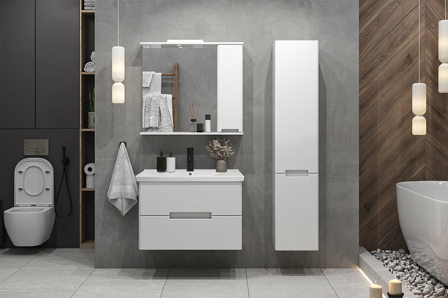 Тумба подвесная SanStar Ориана 80 Без раковины для ванной комнаты, белая