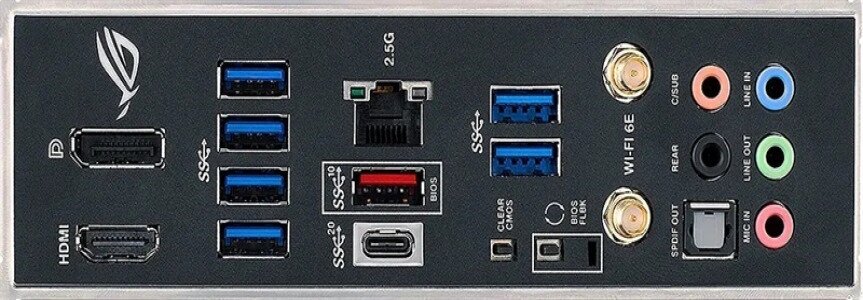 | Плюсы: | Это одна из самых дорогих ATX плат на B760 чипсете. На ней нельзя разгонять процессоры, но начинка как у топовых плат, что-то около 16 фаз на процессор под большим радиатором, сюда можно поставить любой процессор. Идеально подходят топовые без K индекса, например, как у меня - i7-13700F. Есть процессорные линии PCI-e 5.0 под видеокарту и PCI-e 4.0 под SSD, еще две четверки M.2 чипсетные снизу платы. Все M.2 под радиаторами. Понравился звук, он очень громкий, тут есть усилитель, очень качественный аудио-кодек ALC4080 как для встроенного звука (но есть нюансы, о которых ниже). На плате есть двойные отверстия для кулеров, под 1700 и 1200 сокет, скорее всего старые кулеры тоже подойдут, но лично не проверял. Есть Bluetooth 5.3 и Wi-Fi 6E. На фото вы можете разъемы на задней панели. На плате есть разъем под USB Type-C фронтальной панели корпуса. |