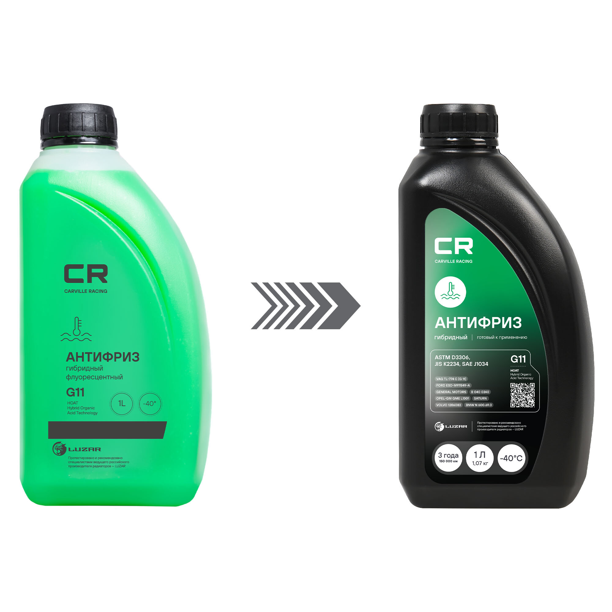 Антифриз, Готовый Раствор Cr G11 Гибридн. Флоур., Зеленый -40°С, 1Л/1.07Кг Carville Racing арт. L2018104