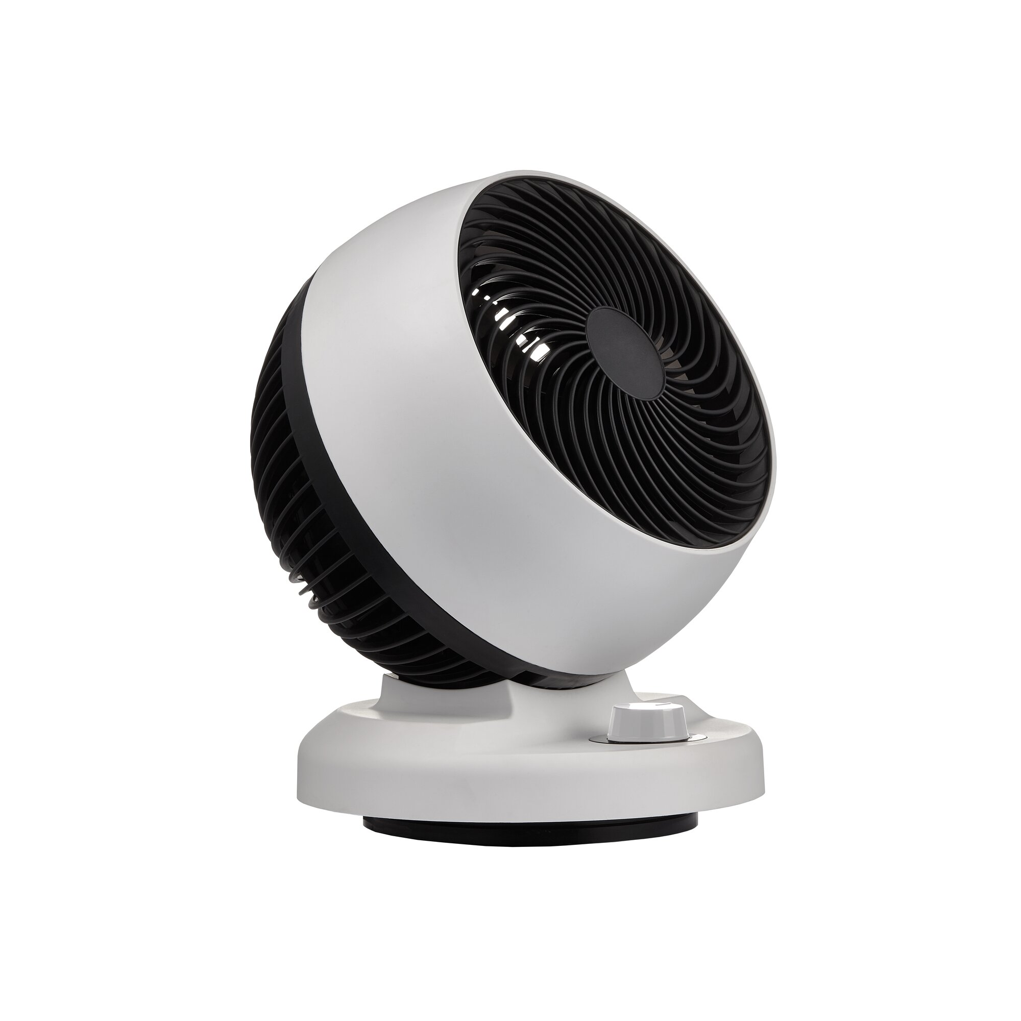 Много режимов. Плавный наклон, без щелчков. Дует мягко. Очень тихий. Размер немного больше баскетбольного мяча. |