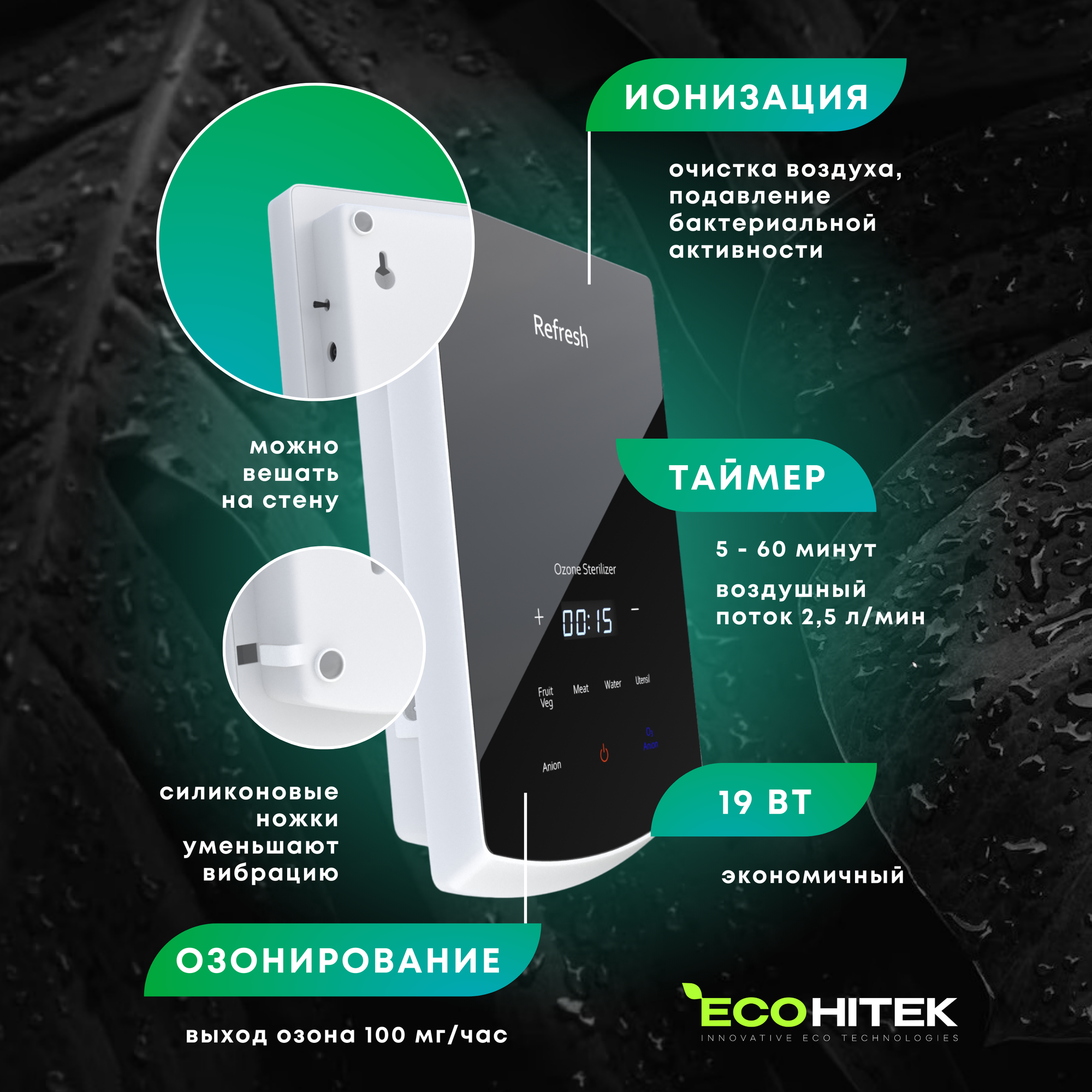 Компактный, стильный, ионизирует воздух, озонирует воздух, воду и продукты